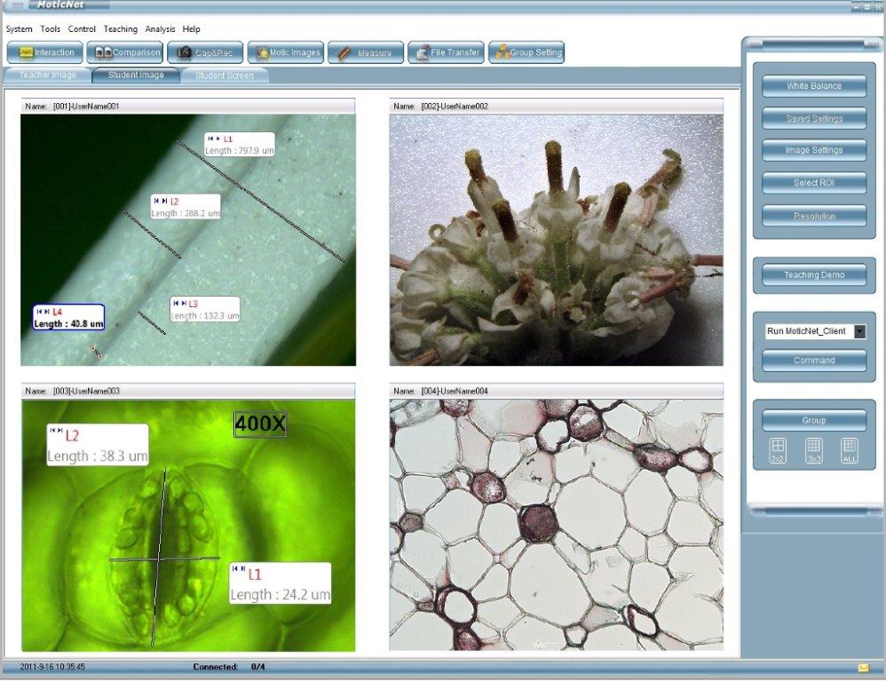 Network microscopy has never been easier! Taking the next step in classroom management, Motic Net allows digital microscopes running with Motic Images Application systems to be linked so that one teacher can have full and instant access to any student at any time. Having a live image transmitted at high-speed directly from the microscope to the computer means that students no longer have to fight over who gets to look through the eyepiece. With Motic Net, teachers can promote team work and group thinking easily.